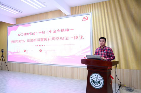 为深入学习贯彻党的二十届三中全会精神,12月4日,必威唯一官方网站党委宣传部副部长(主持工作)陶强围绕“把握时度效,推进新闻宣传和网络舆论一体化——学习贯彻党的二十届三中全会精神”主题,为学校2024年宣传思想文化工作骨干培训班学员作党的二十届三中全会精神宣讲专题辅导报告。